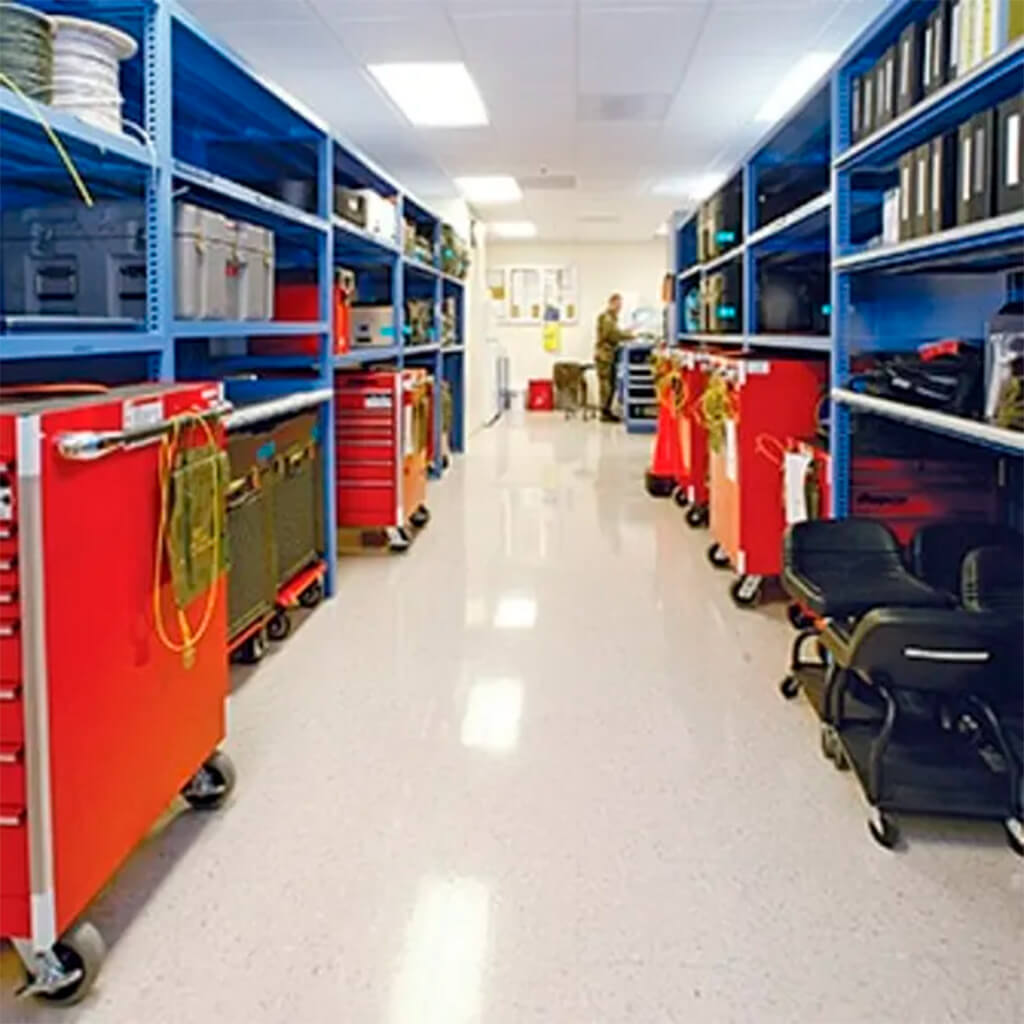 Stanley® Vidmar® es líder en soluciones de almacenamiento militar en América, ofreciendo sistemas diseñados específicamente para las necesidades operativas de las fuerzas armadas. Nuestros módulos optimizan el espacio, mejoran la eficiencia logística y mantienen los suministros listos para su despliegue.