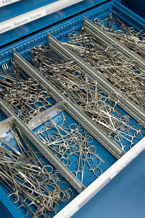 Sistemas de almacenaje de Stanley Vidmar que se adaptan a los altos estándares de higiene, seguridad y organización en el sector médico.