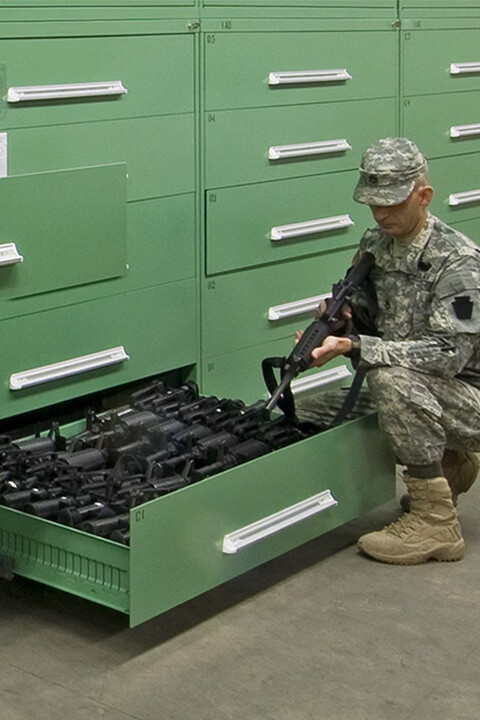 Productos robustos y confiables de Stanley Vidmar que cumplen con las exigencias de espacios y seguridad en instalaciones militares.