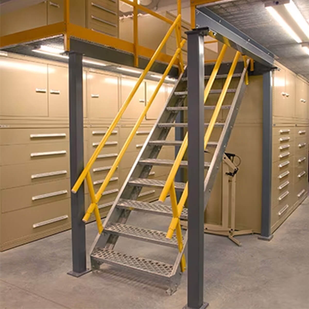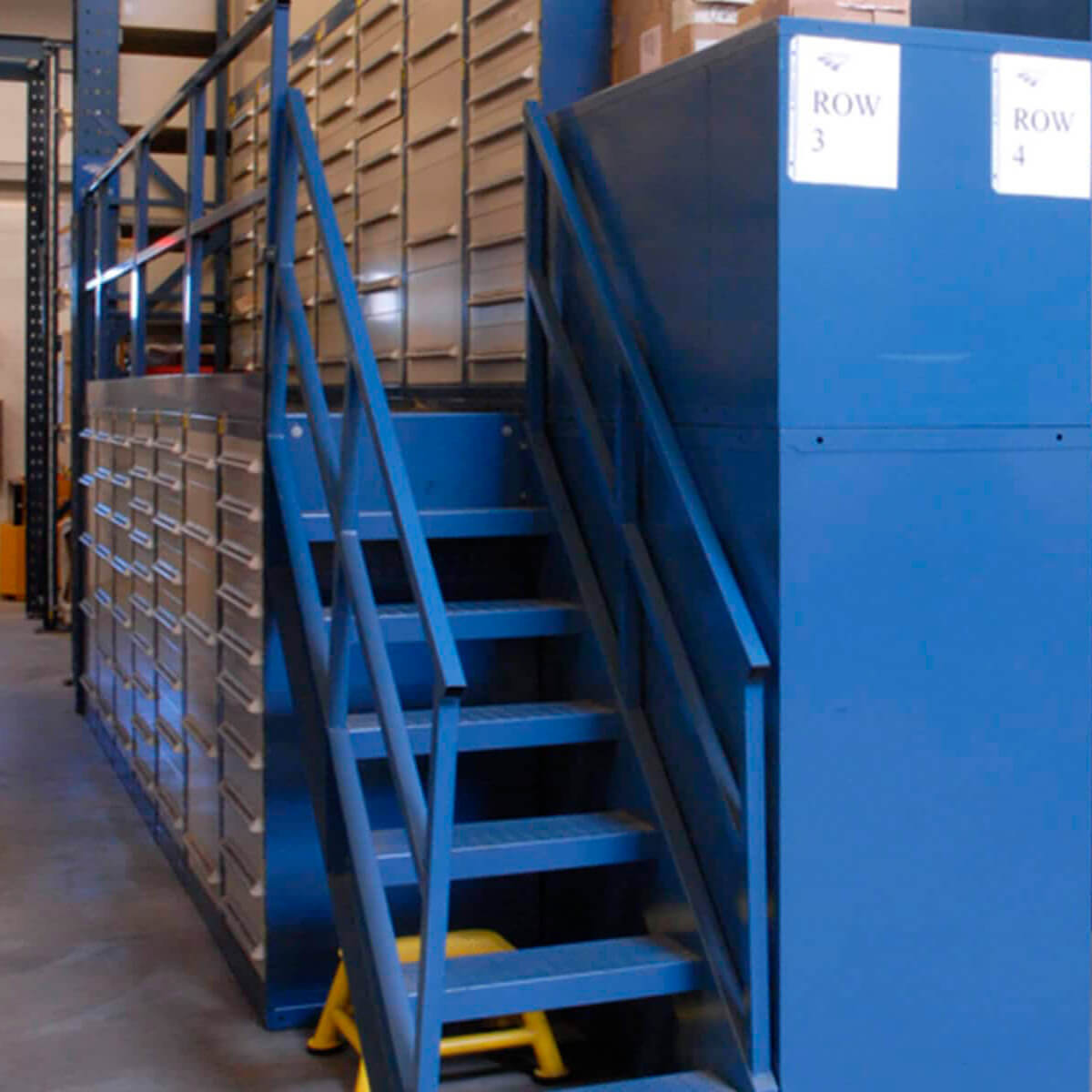 • Beneficios: Escaleras y barandillas integradas, acceso optimizado a zonas específicas, mejor control de inventario.